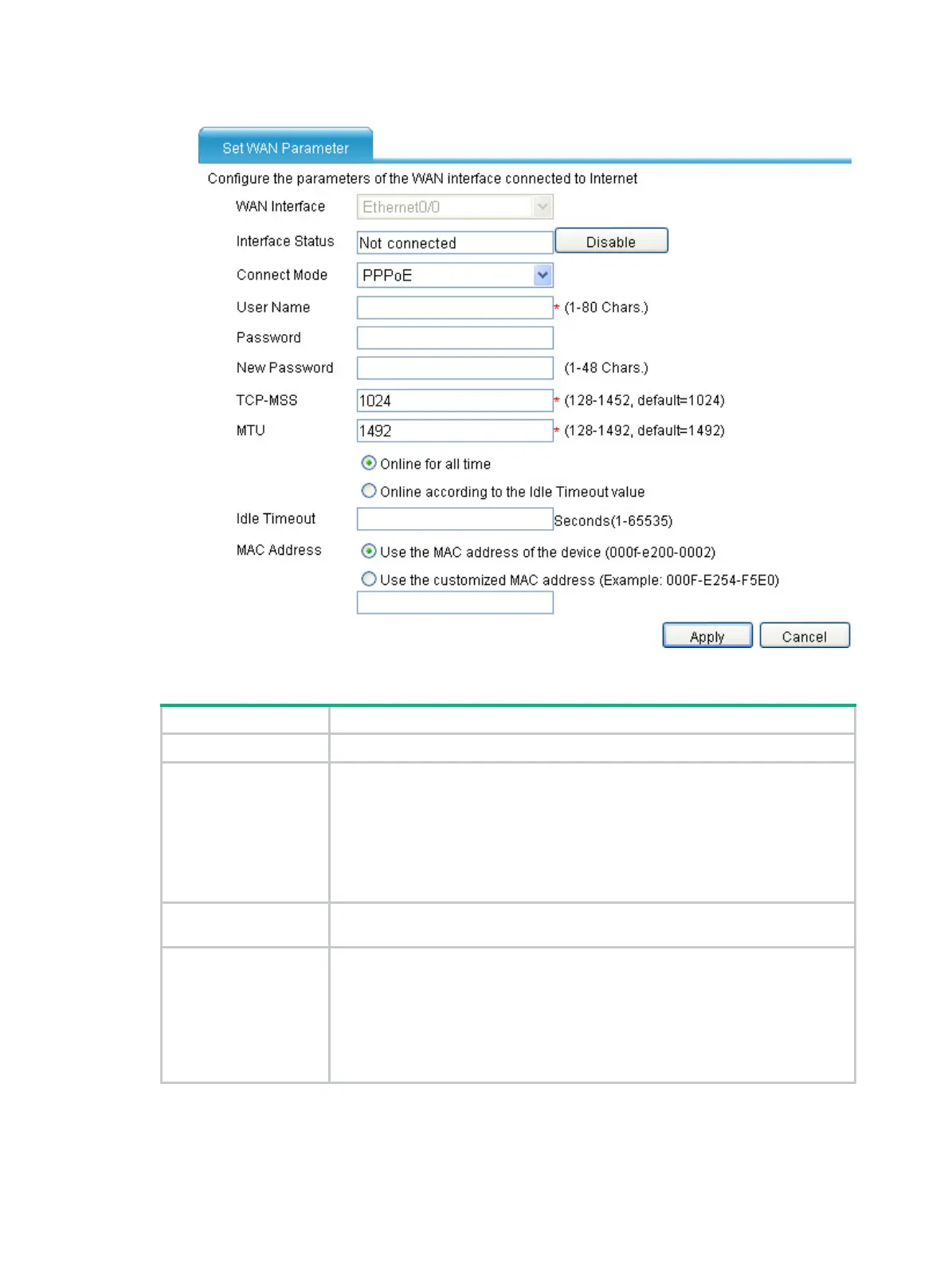 WAN Interface Displays the name of the Ethernet interface to be configured.
