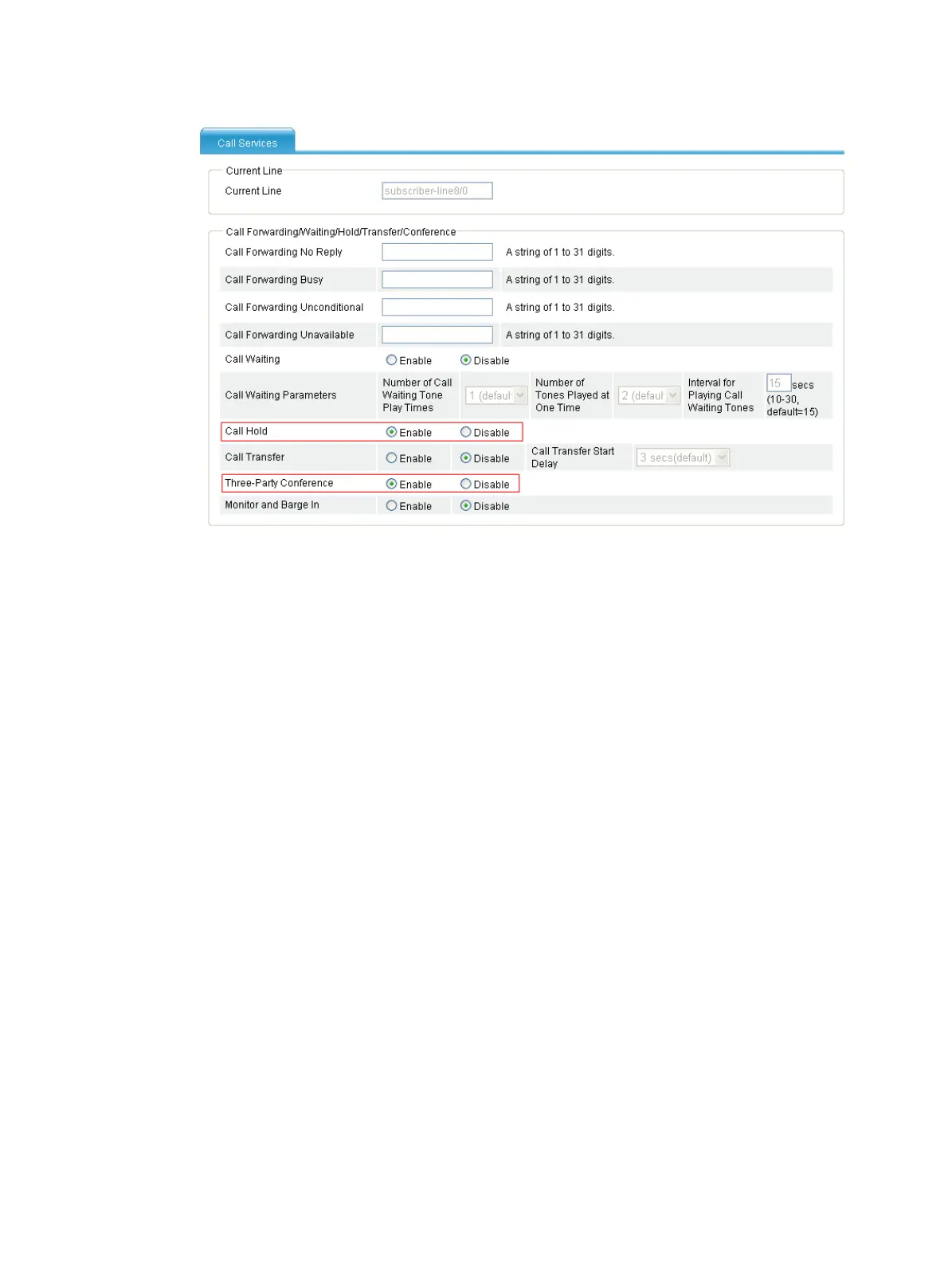 • Configure barge in for Telephone C to participate the conversation between Telephone A and
