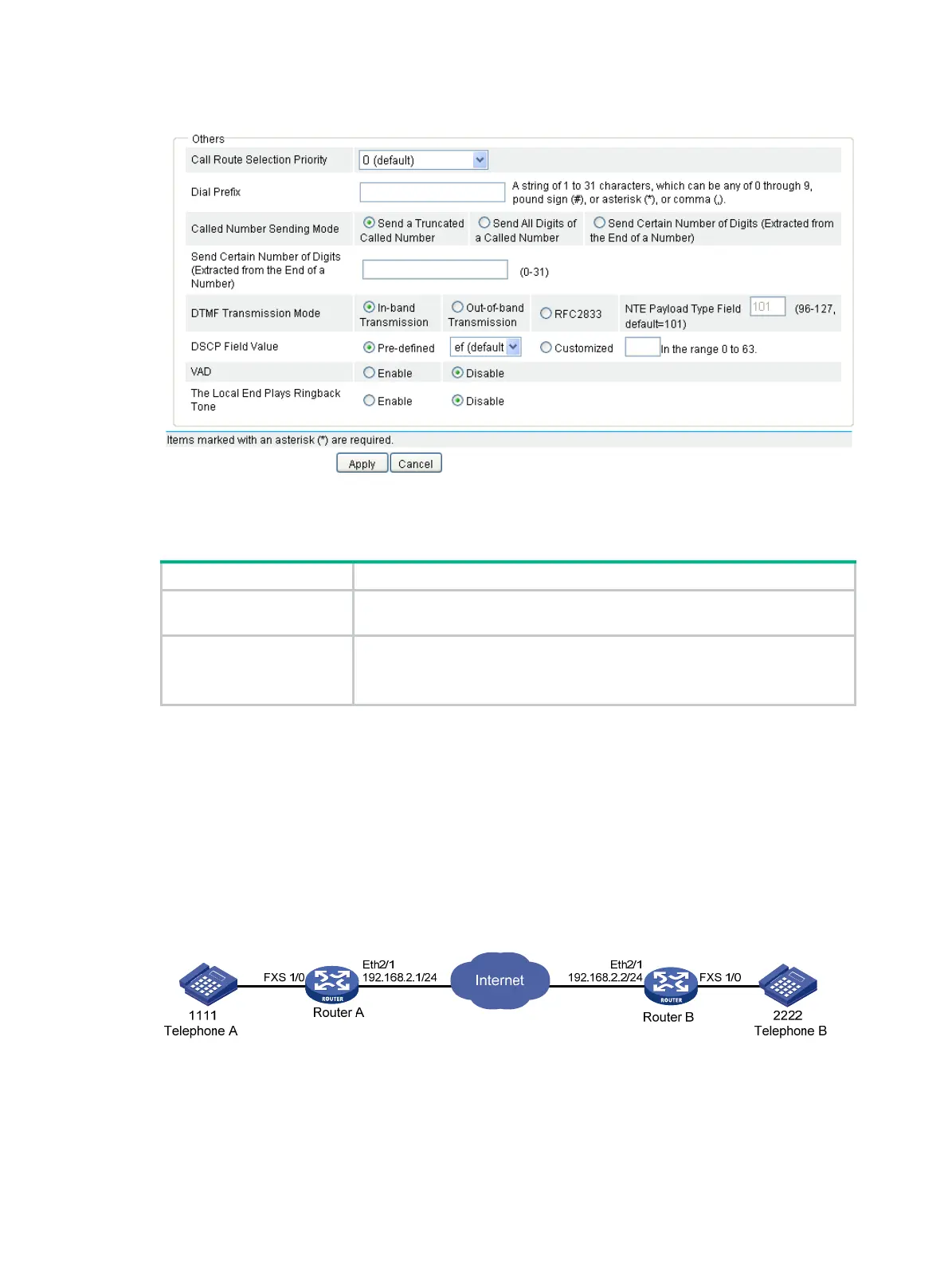 Two routers work as SIP UAs. After establishing a call connection, the calling and called parties