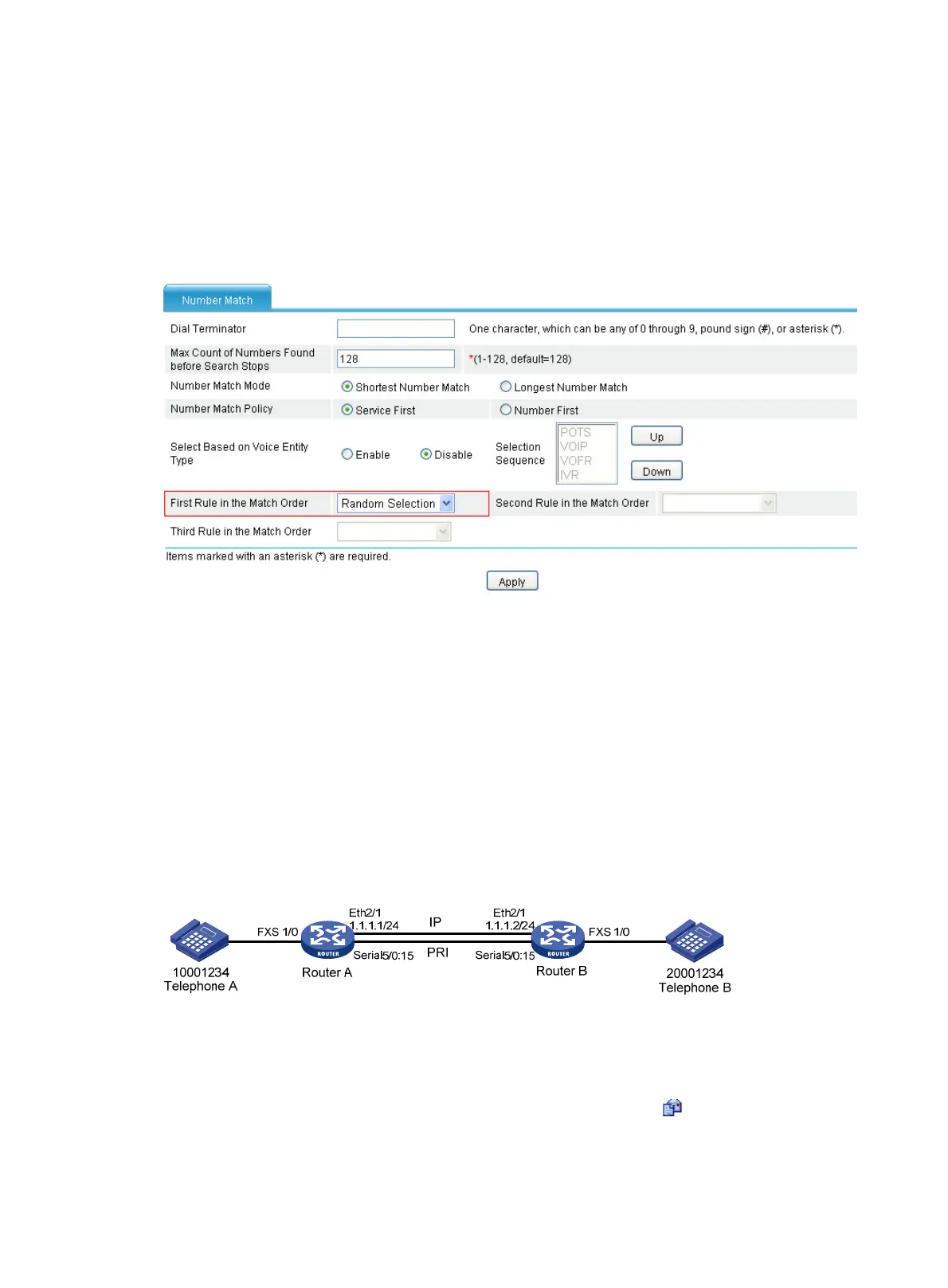 1. Select Voice Management > Dial Plan > Number Match from the navigation tree to access