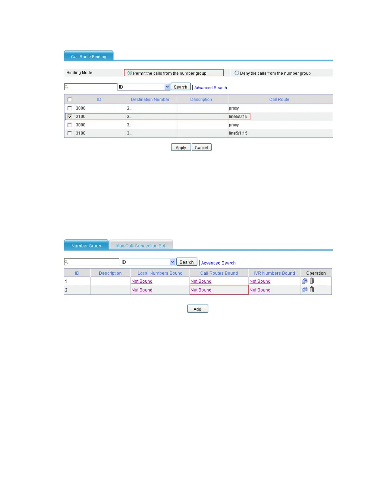 # Bind a call route to the number group 2 to allow that subscribers whose telephone number