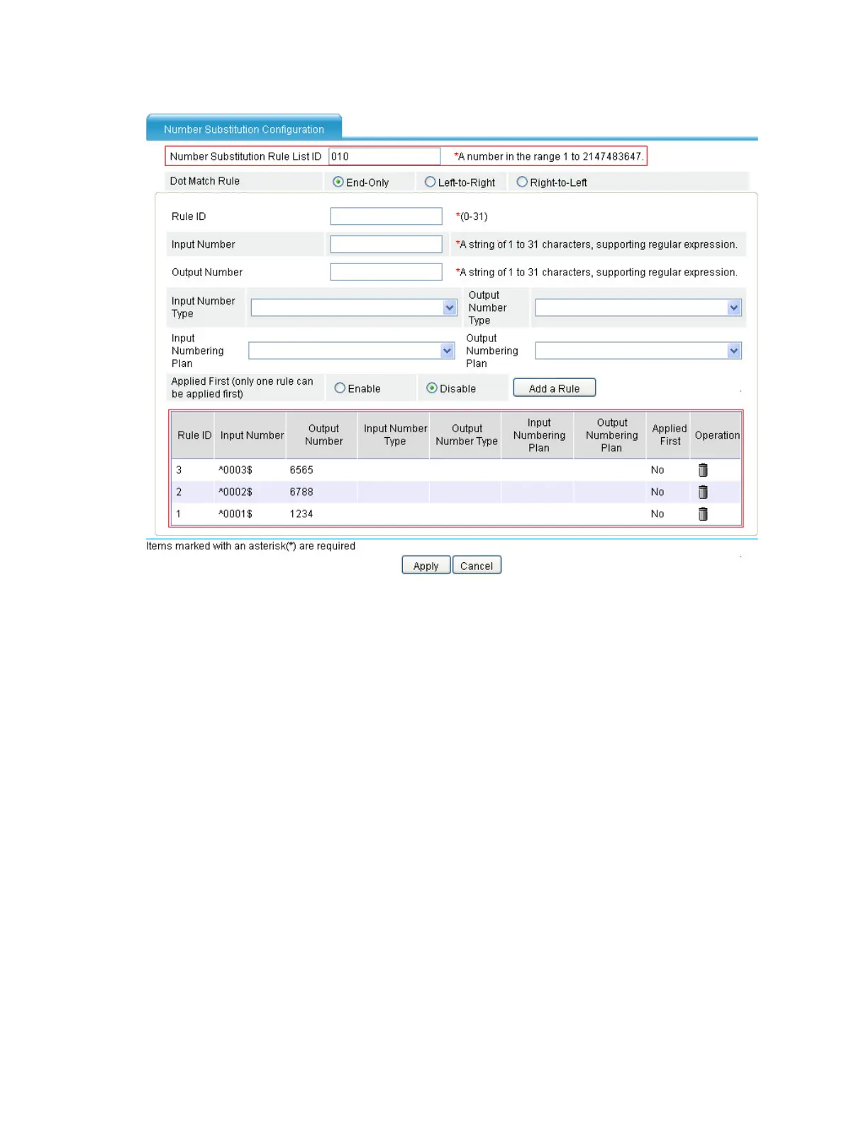 Select Voice Management > Dial Plan > Number Substitution from the navigation tree, click Add