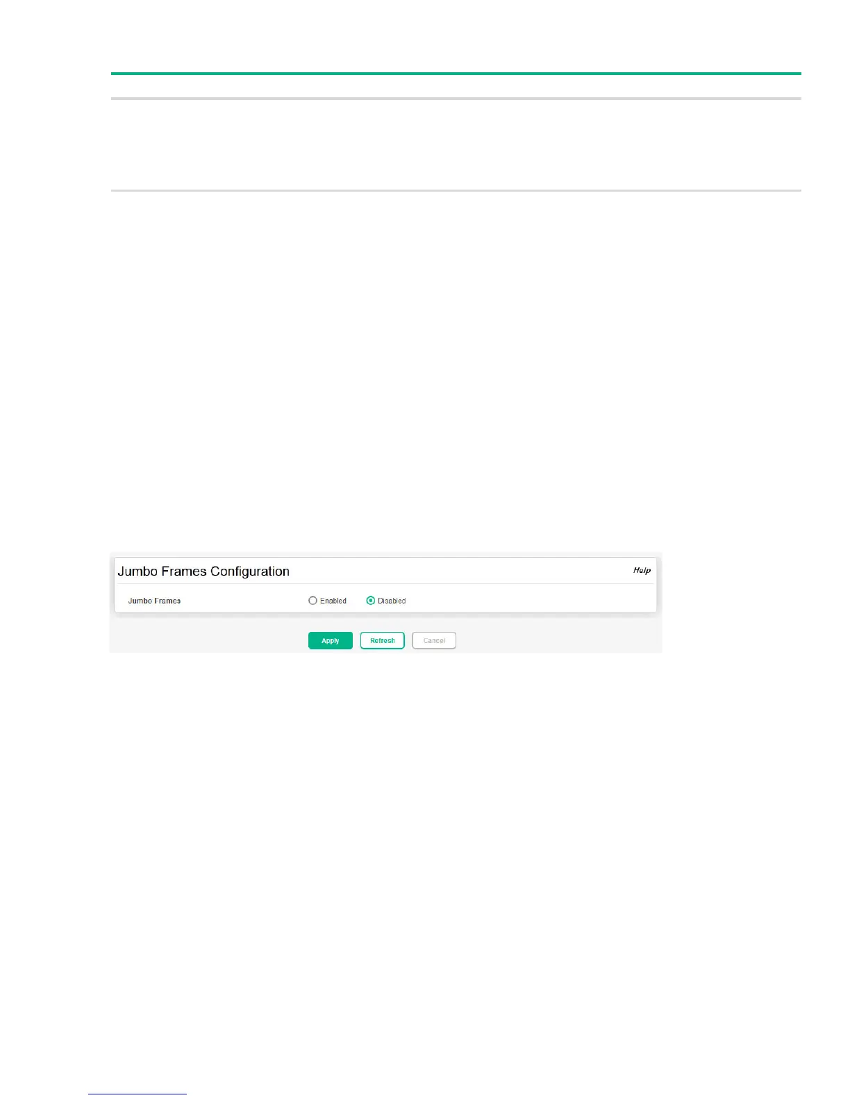 Use the Jumbo Frames page to enable the switch to forward jumbo Ethernet frames. The jumbo