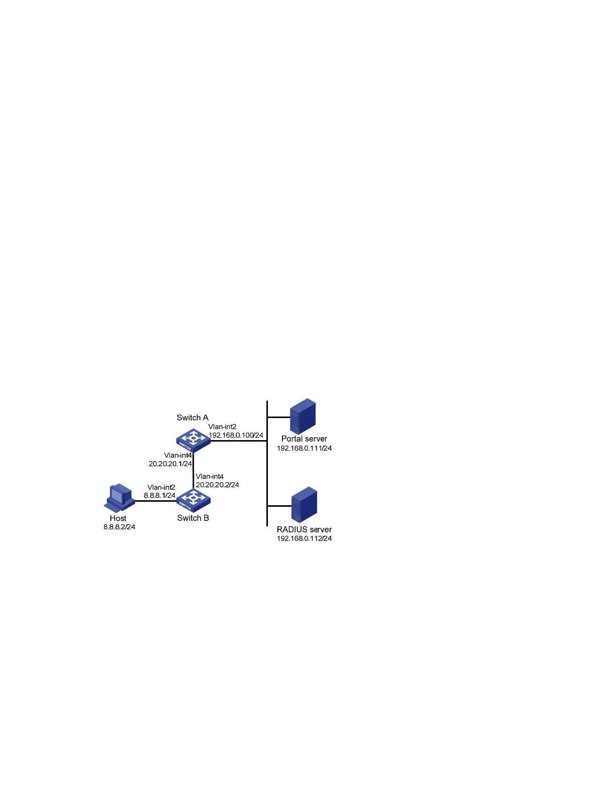 As shown in Figure 47, Switch A supports portal authentication. The host accesses Switch A through