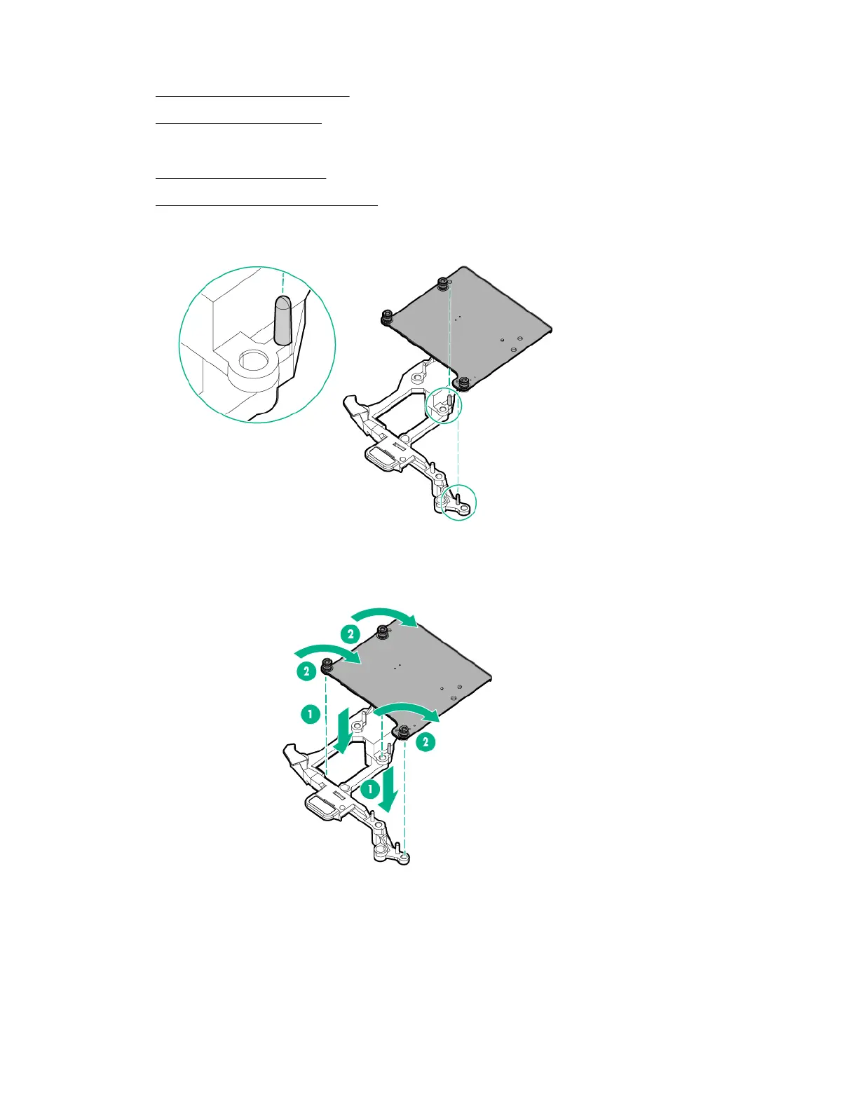 8. Align the mezzanine assembly with the guide pins on the system board, and then install the