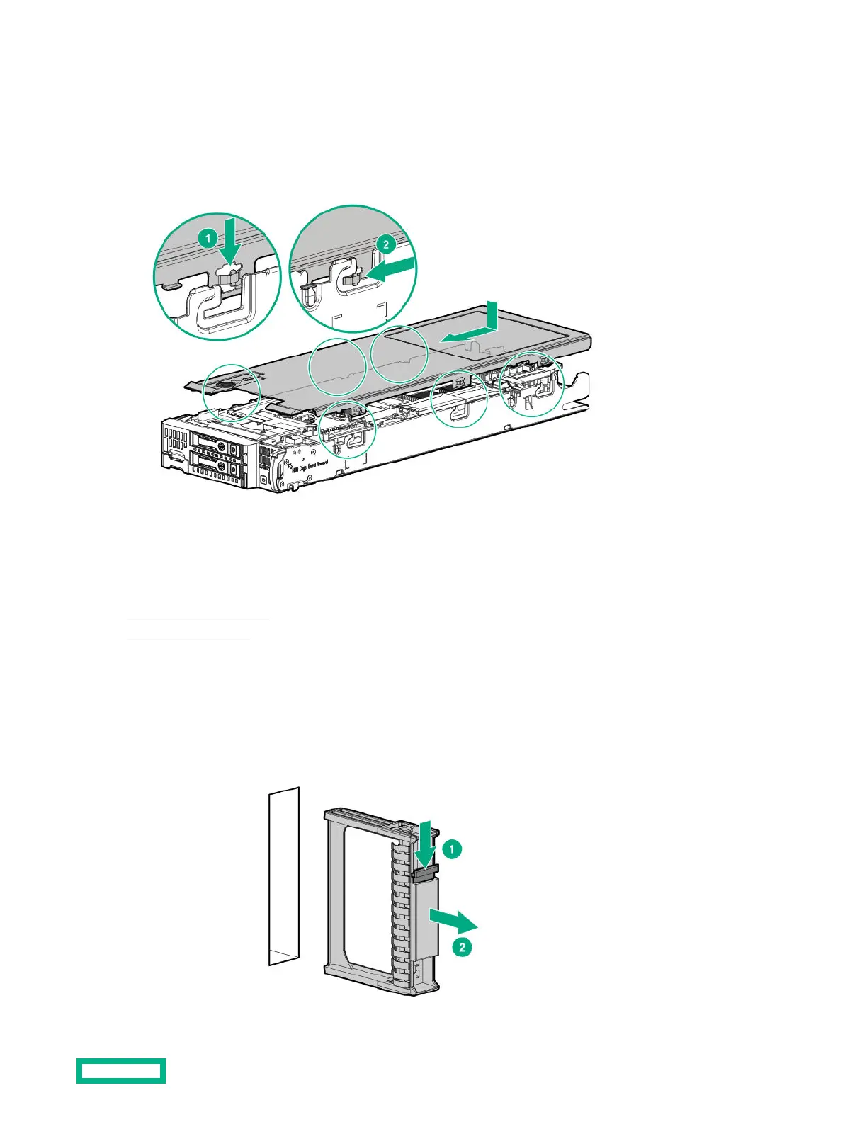 1. Align the access panel with the guides on the server blade in all six locations and place the access panel on the server
