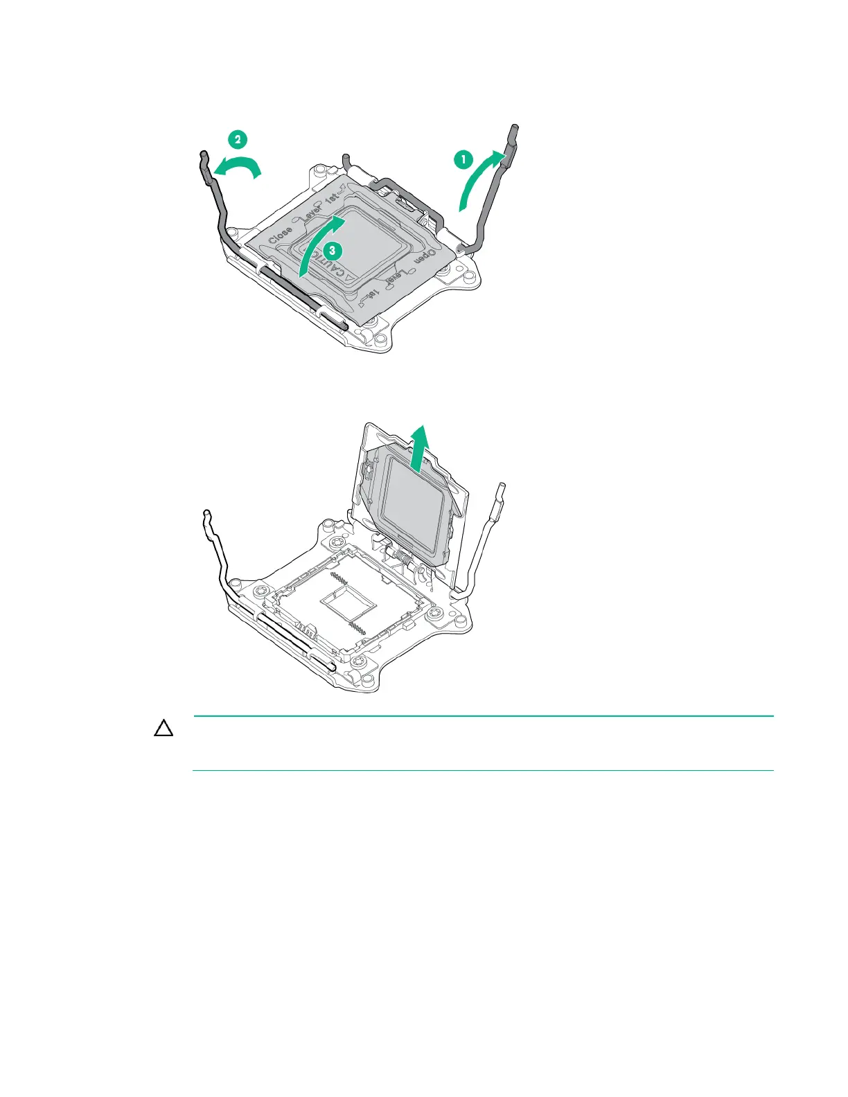 9. Open each of the processor locking levers in the order indicated in the following illustration, and then