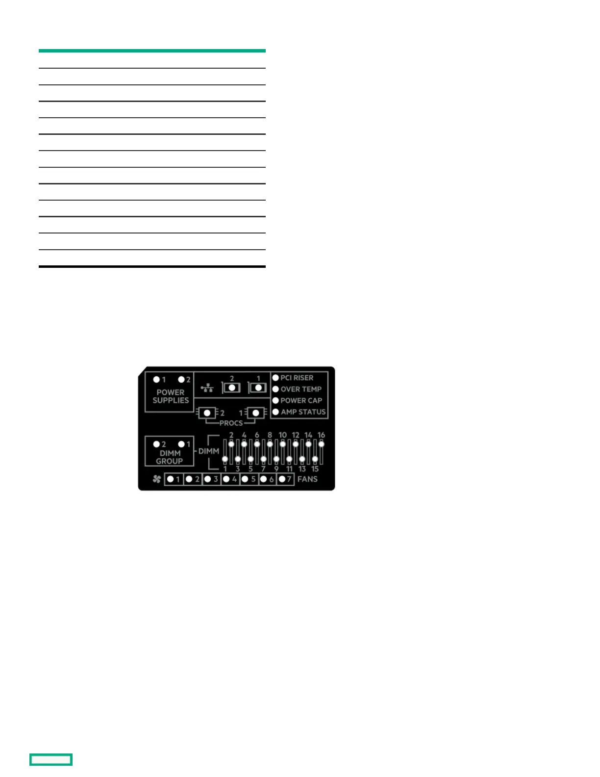 The Systems Insight Display LEDs represent the system board layout. The display enables diagnosis with the access panel installed.