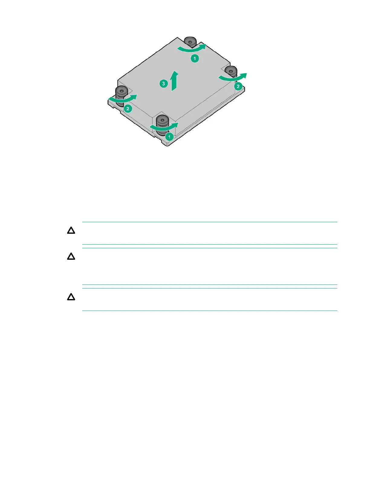 CAUTION: Heatsink screws must be tightened and loosened in alternating sequence. Do not overtighten the