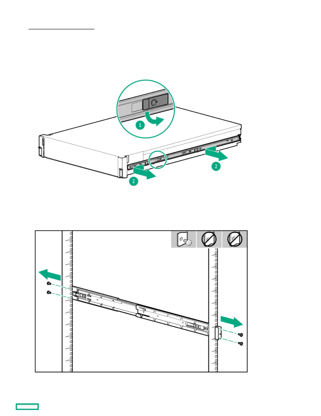 b. Slide the rail towards the front panel and pull it from the server (callout 2).