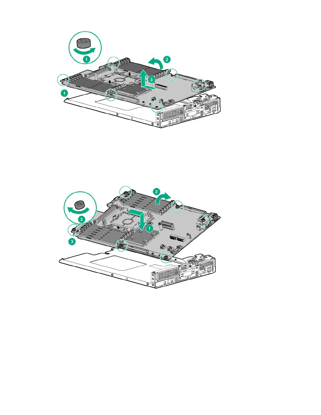 b. Align the processor heatsink assembly with the heatsink alignment posts and gently lower it down until it sits evenly on