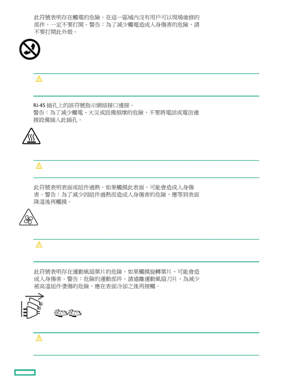 Hazardous moving parts. Keep away from moving fan blades. To reduce the risk of injury from a hot component, allow