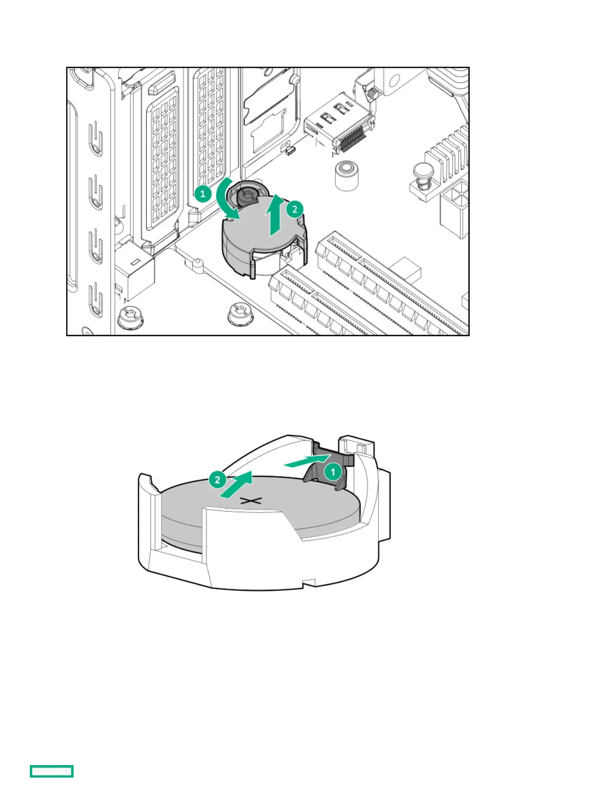 b. Lift the cover from the system battery.
