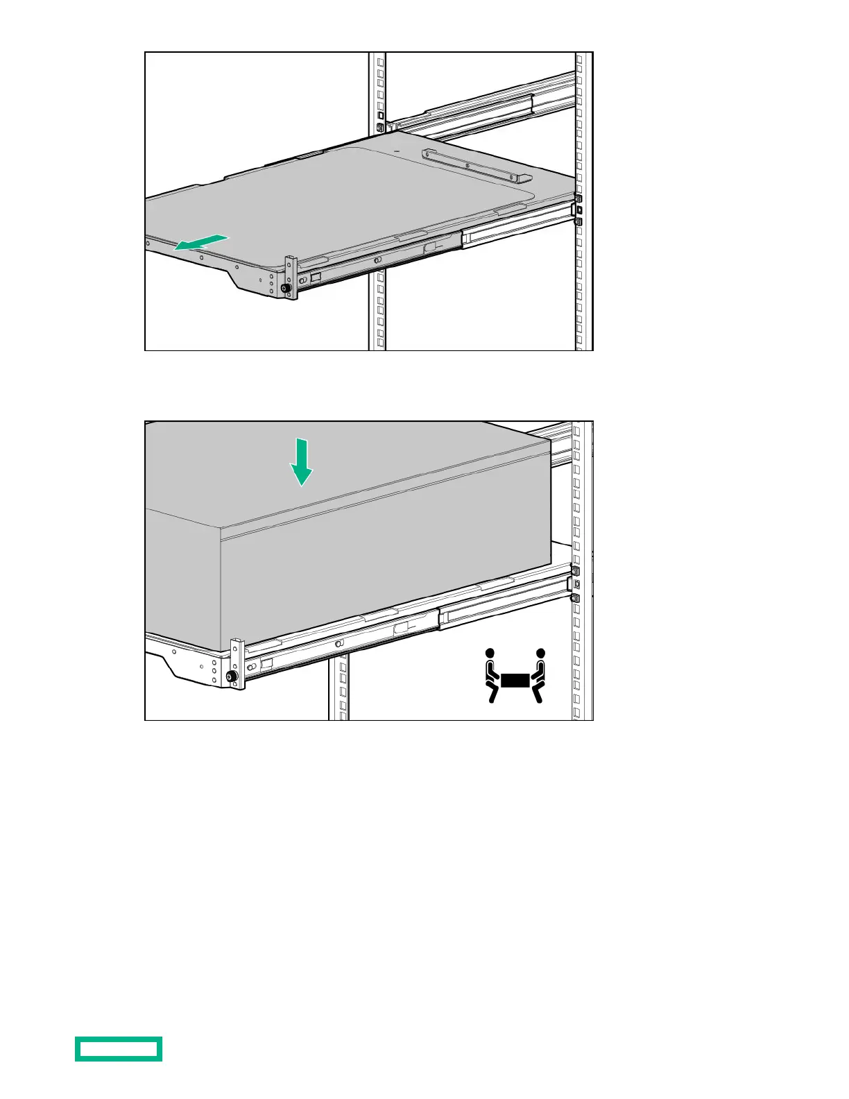 Press and hold the blue rail-release tabs, and then slide the server tray back into the rack.