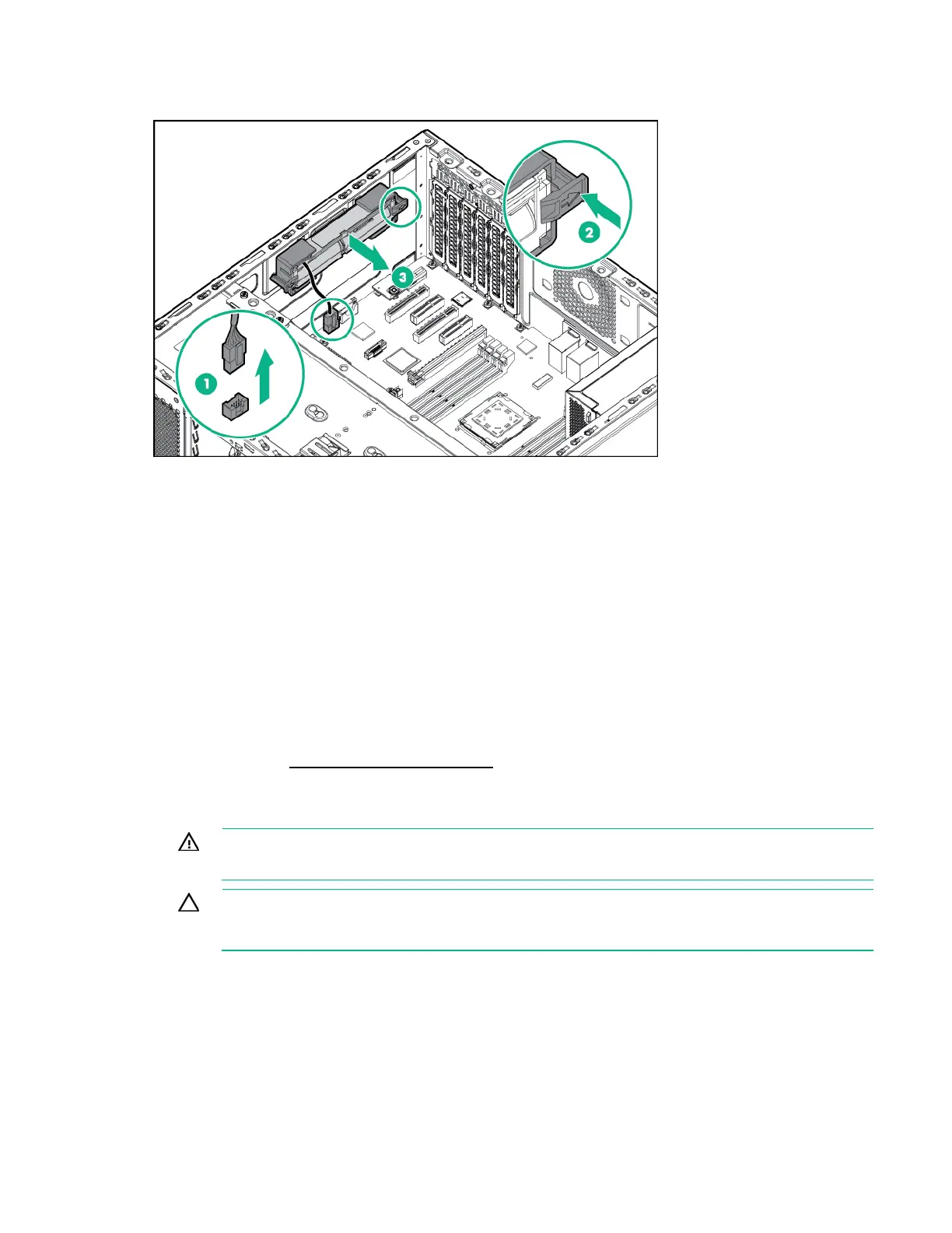 Disconnect the battery cable from the system board connector and remove the Smart Storage