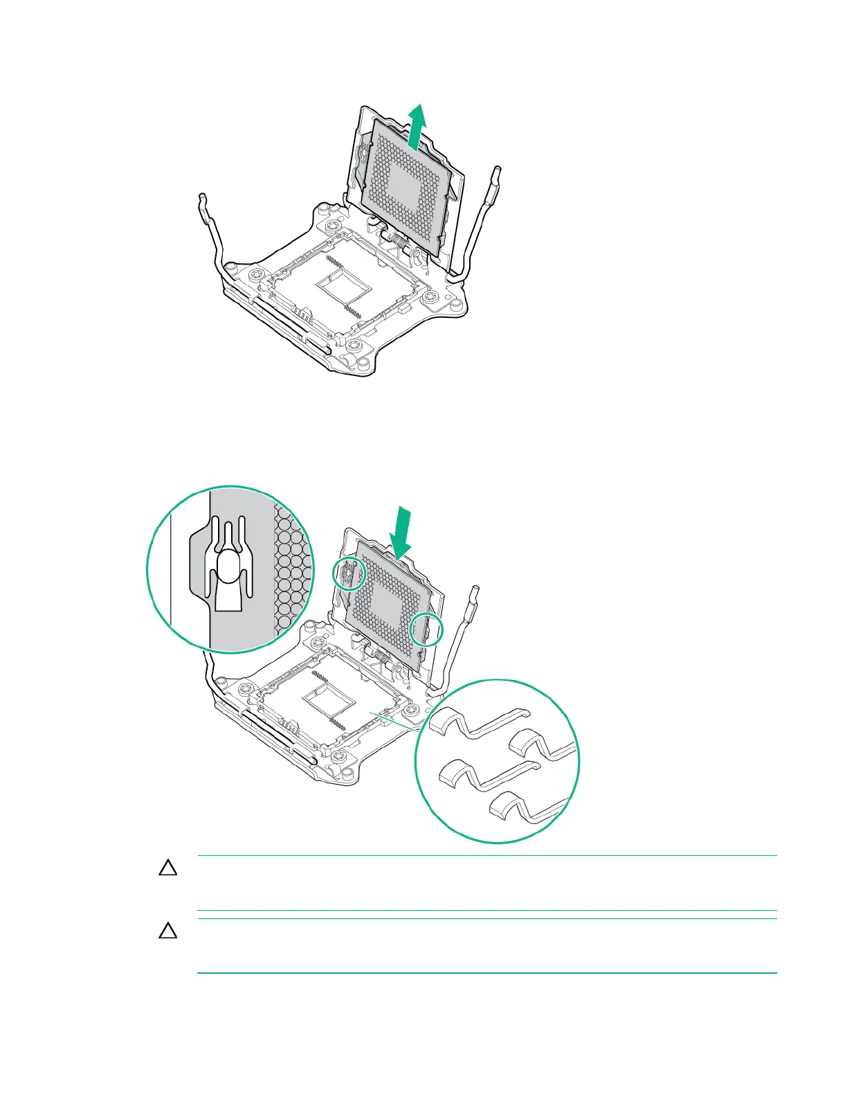 CAUTION: Do not press down on the processor. Pressing down on the processor might