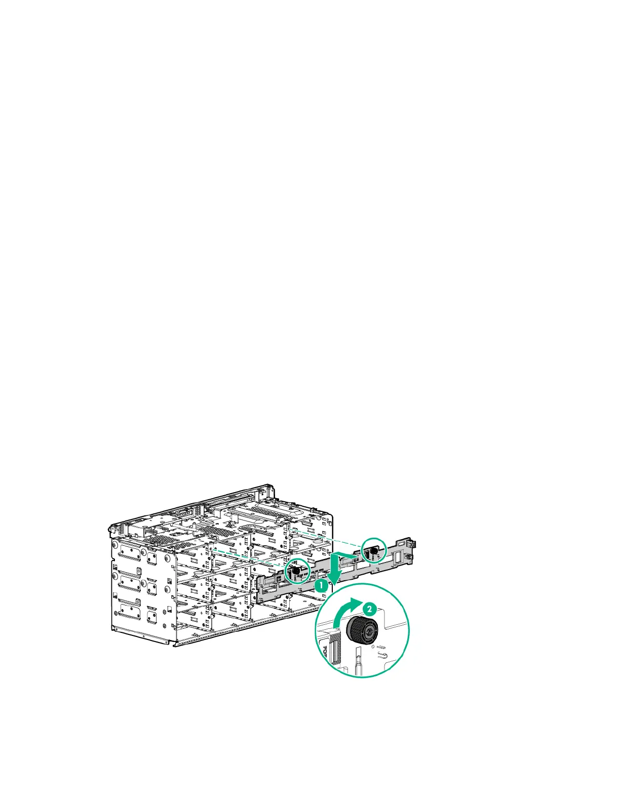 9. Attach the hot-plug drive backplane to the drive cage, and then tighten the thumbscrews.