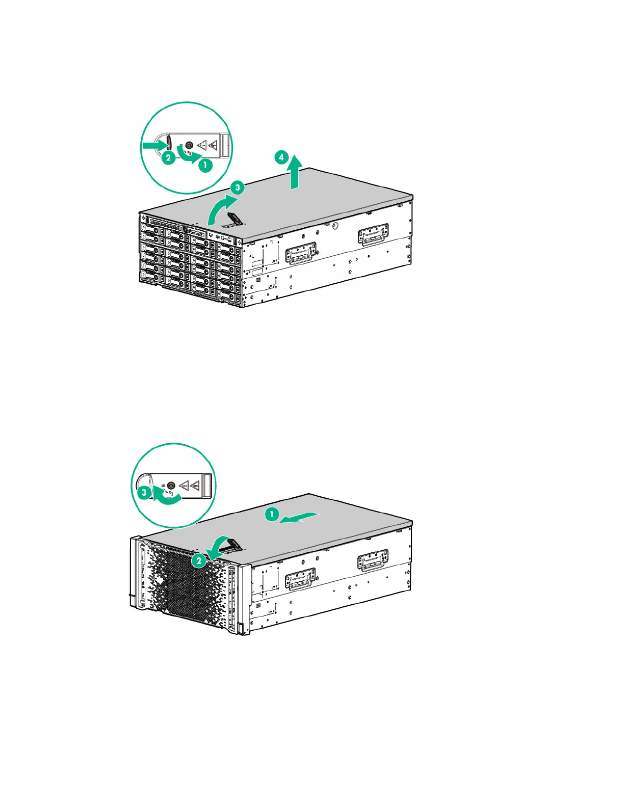 1. Place the access panel on top of the server with the hood latch open. Allow the panel to extend past