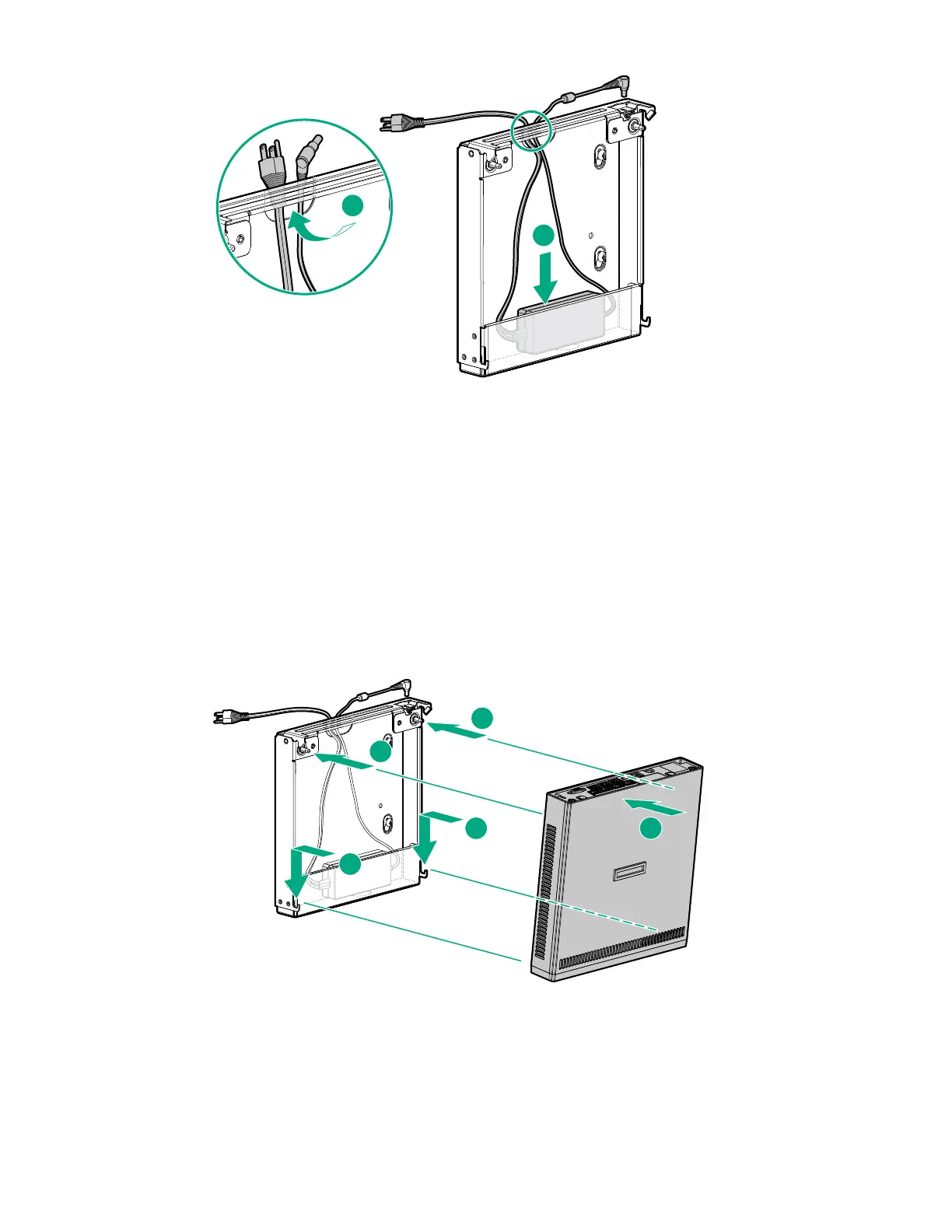 4. Depending on how far the power source is from the wall mount, store the extra length of the power cord