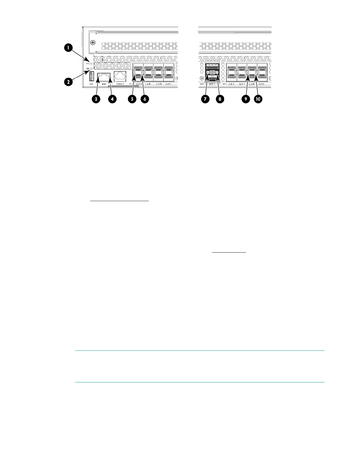 9. 1/10 GbE FCIP port status LED (port 4) 10. 1/10 GbE FCIP port status LED (port 8)