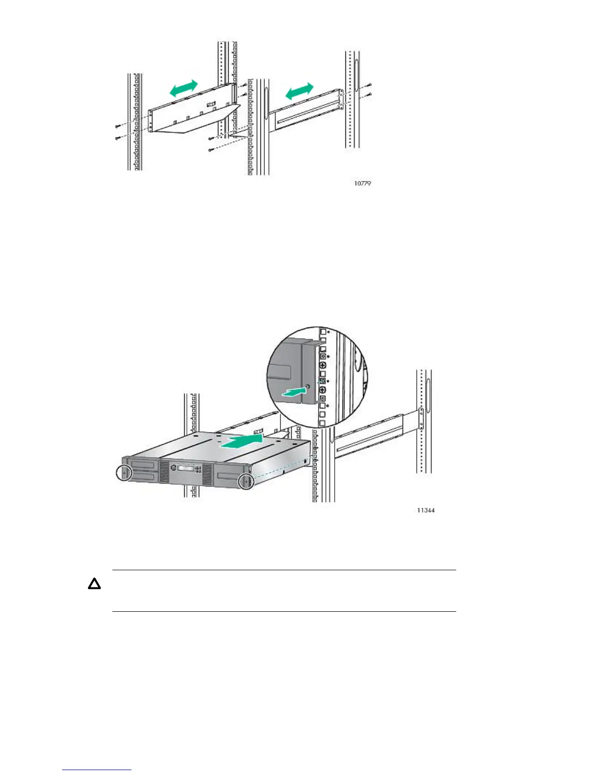 b. Extend the rail to the depth of the rack and secure the rail to the back of the rack.
