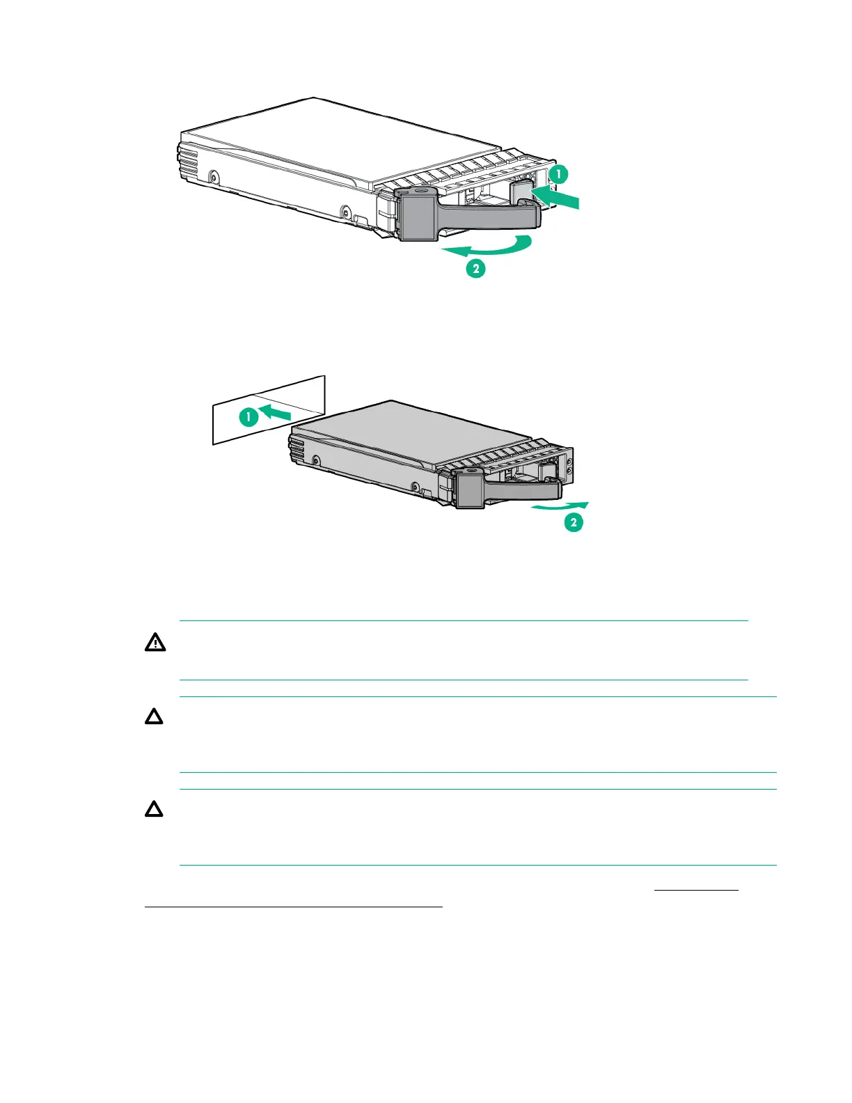 d. Insert the hard drive (1) and close the carrier handle (2).