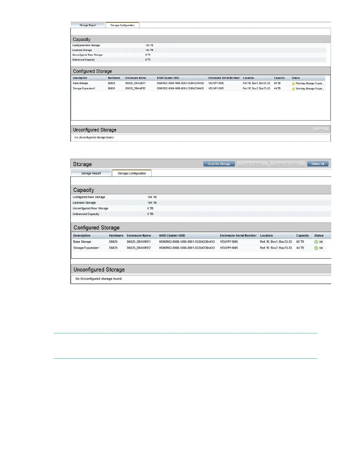 When you return to the Storage Configuration page you will be prompted to scan for storage again.