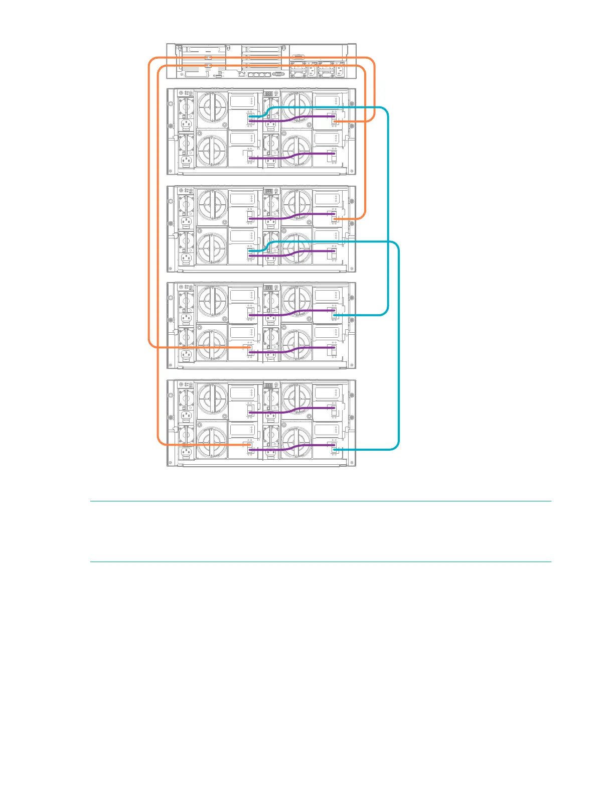 Figure 4: Cabling showing four enclosures installed below the server