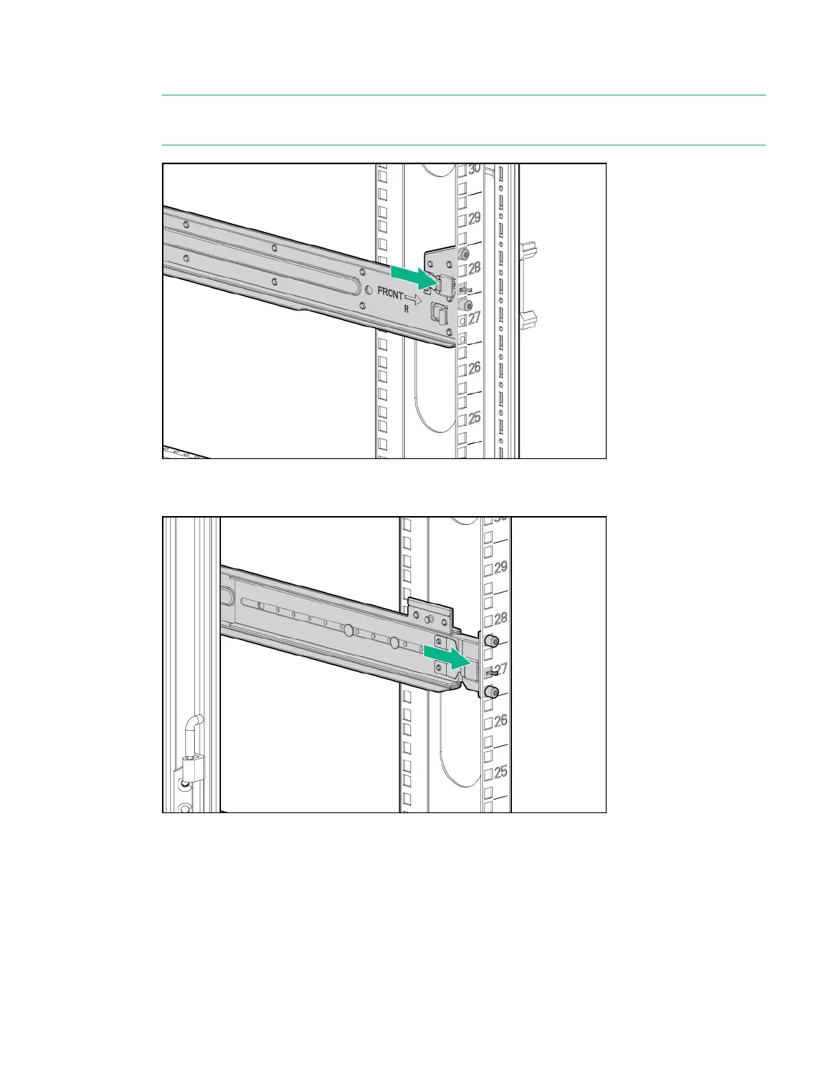e. To engage the front rack rail mount, pull the rail towards the front of the rack to engage the spring