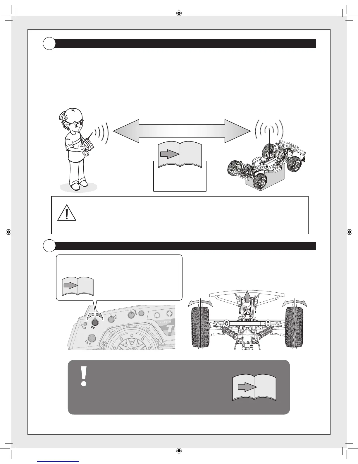 to make sure the model responds correctly. Do not operate the model if there is any problem with the radio system. If you switch on the R/C car rst