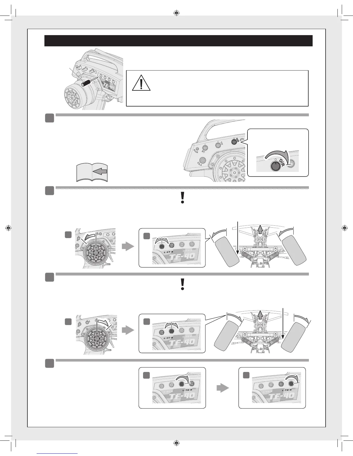 cepteur. Mettez le véhicule sur un support, et réglez les trims de direction