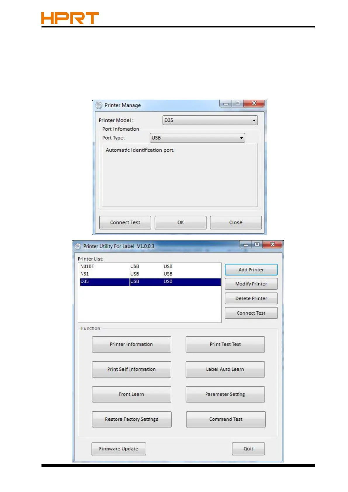 ●Click Add Printer”. Choose the printer and port (eg: USB), then click “OK”, showed in “Printer