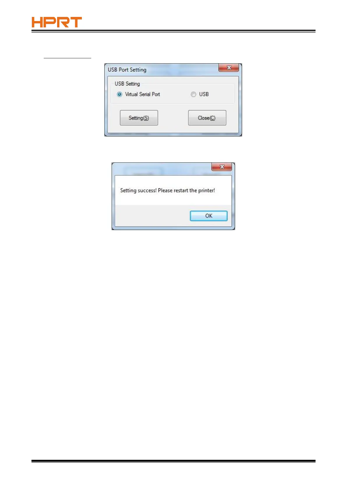 Click "Virtual serial port" setting and restart the printer.