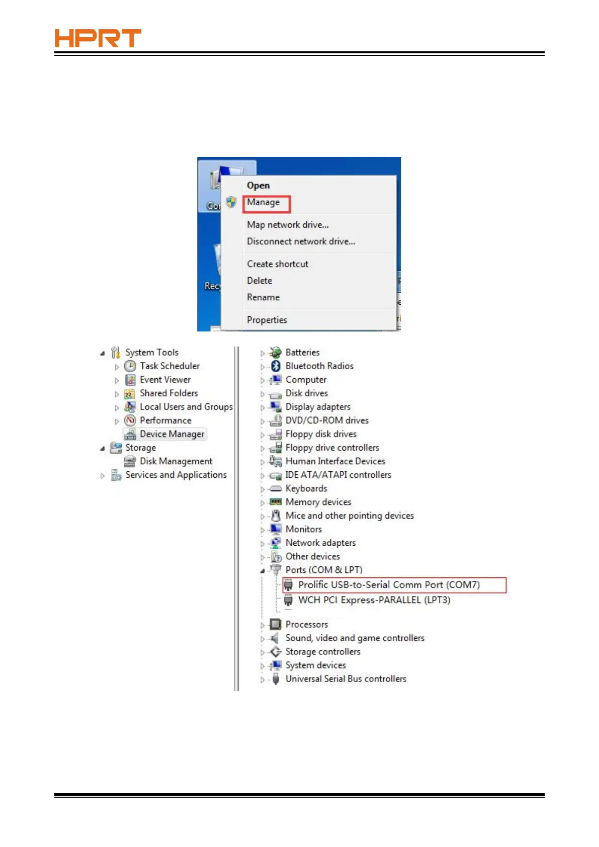 2 Click "Device Manager" to view the virtual port. (such as: COM7)