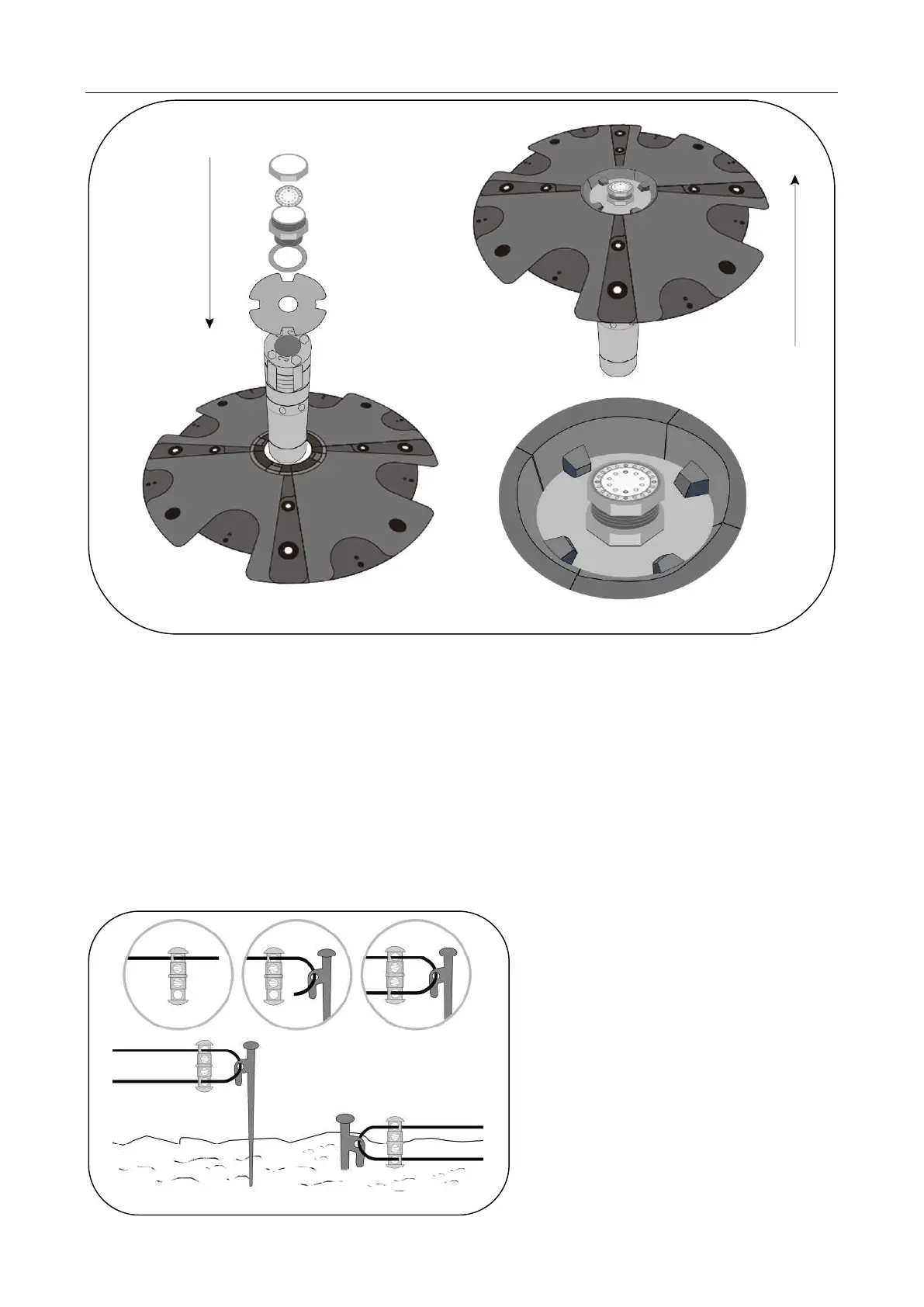 the stakes by the cable clamps.