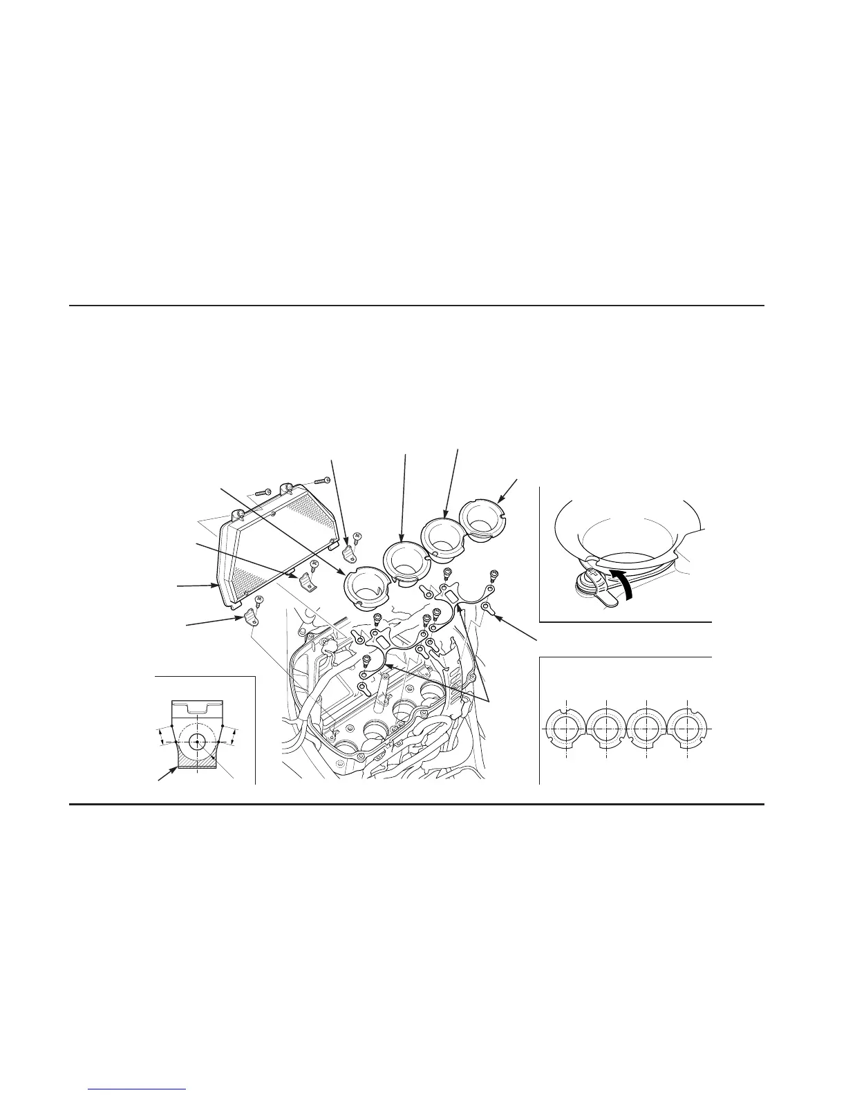 4. Install the racing kit air funnels into their proper location according to each identification mark on the funnel.