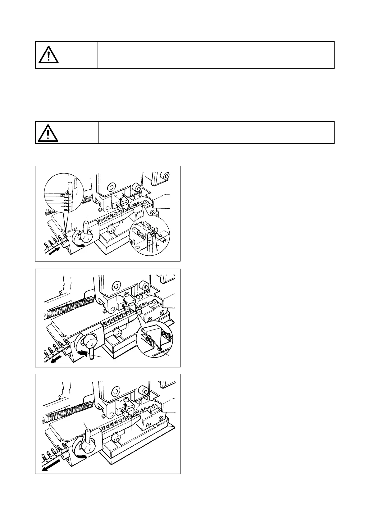 3 ) ね じ を矢印 方向に下げ、送り爪の先端が端