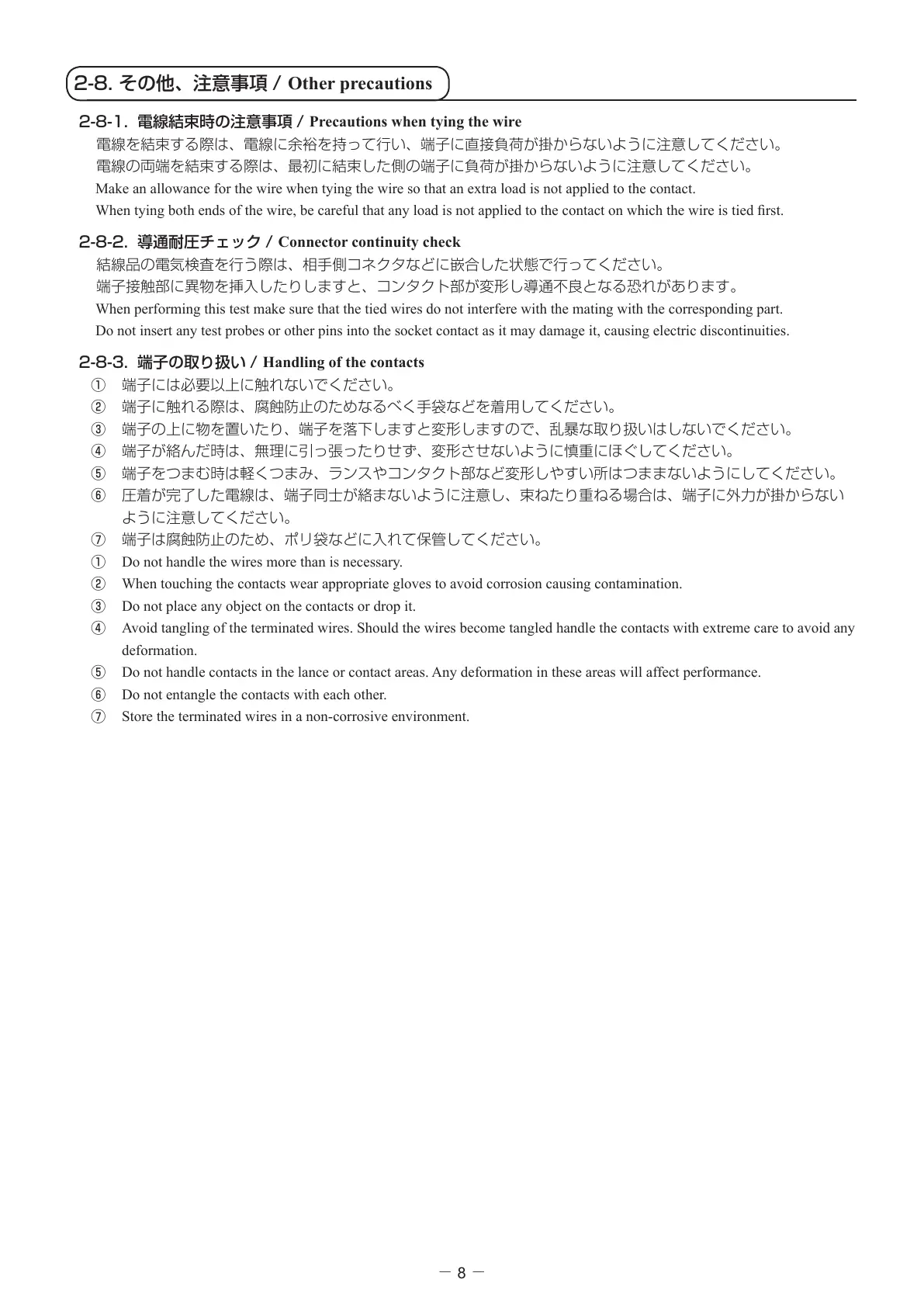 Avoid tangling of the terminated wires. Should the wires become tangled handle the contacts with extreme care to avoid any