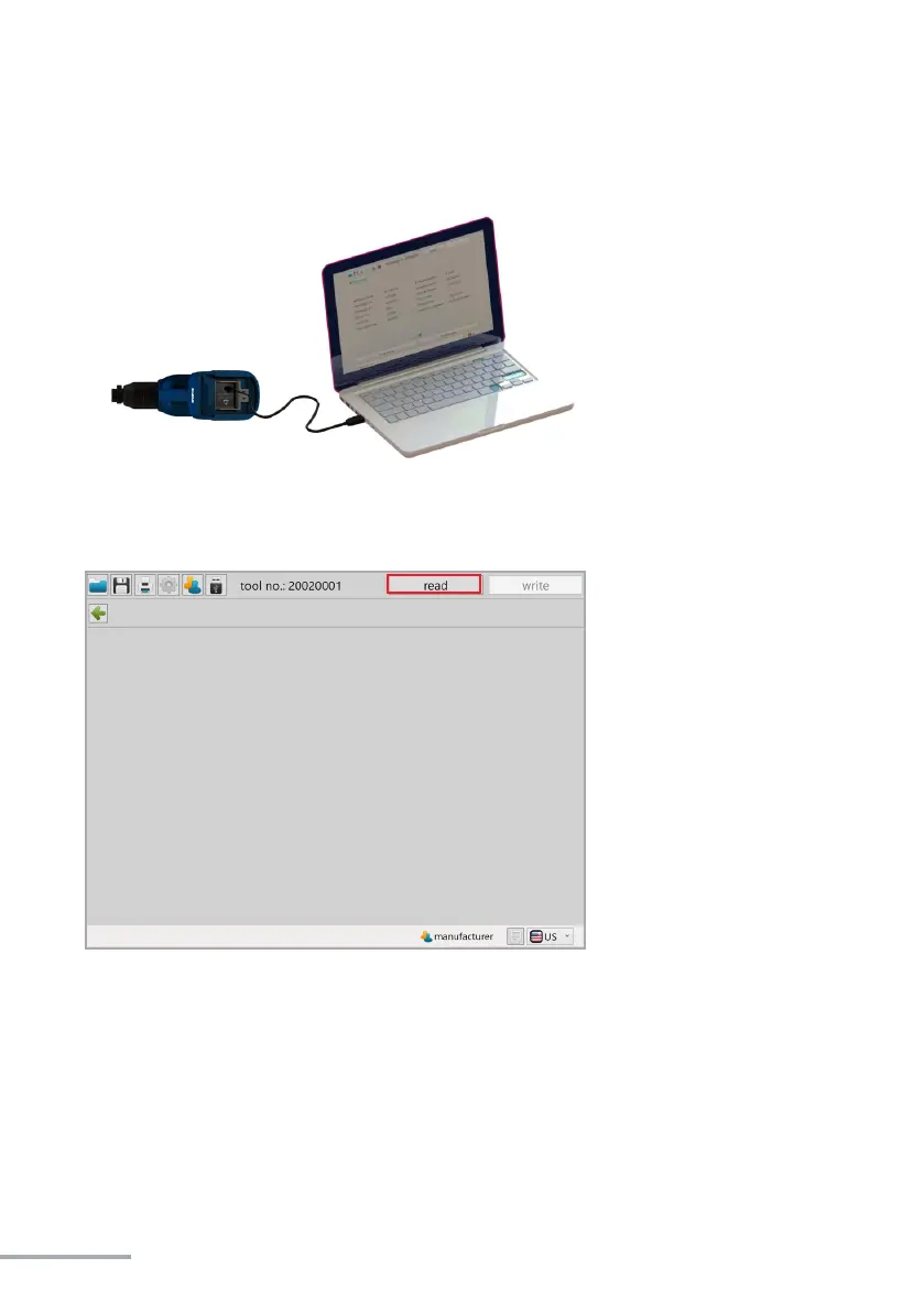 3. Insert the USB cable included into the Mini-B socket at the boom of the tool and the