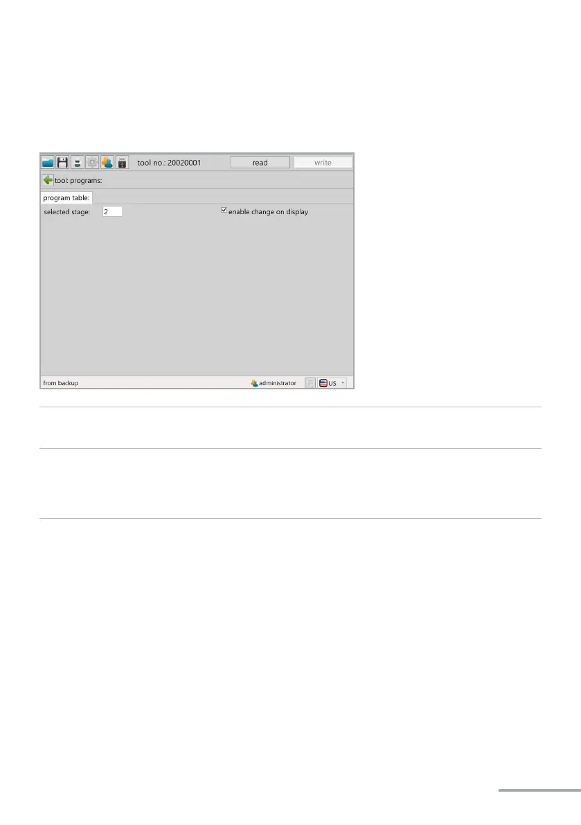 „selected stage“ The selected stage determines the programme of the table which is ac-