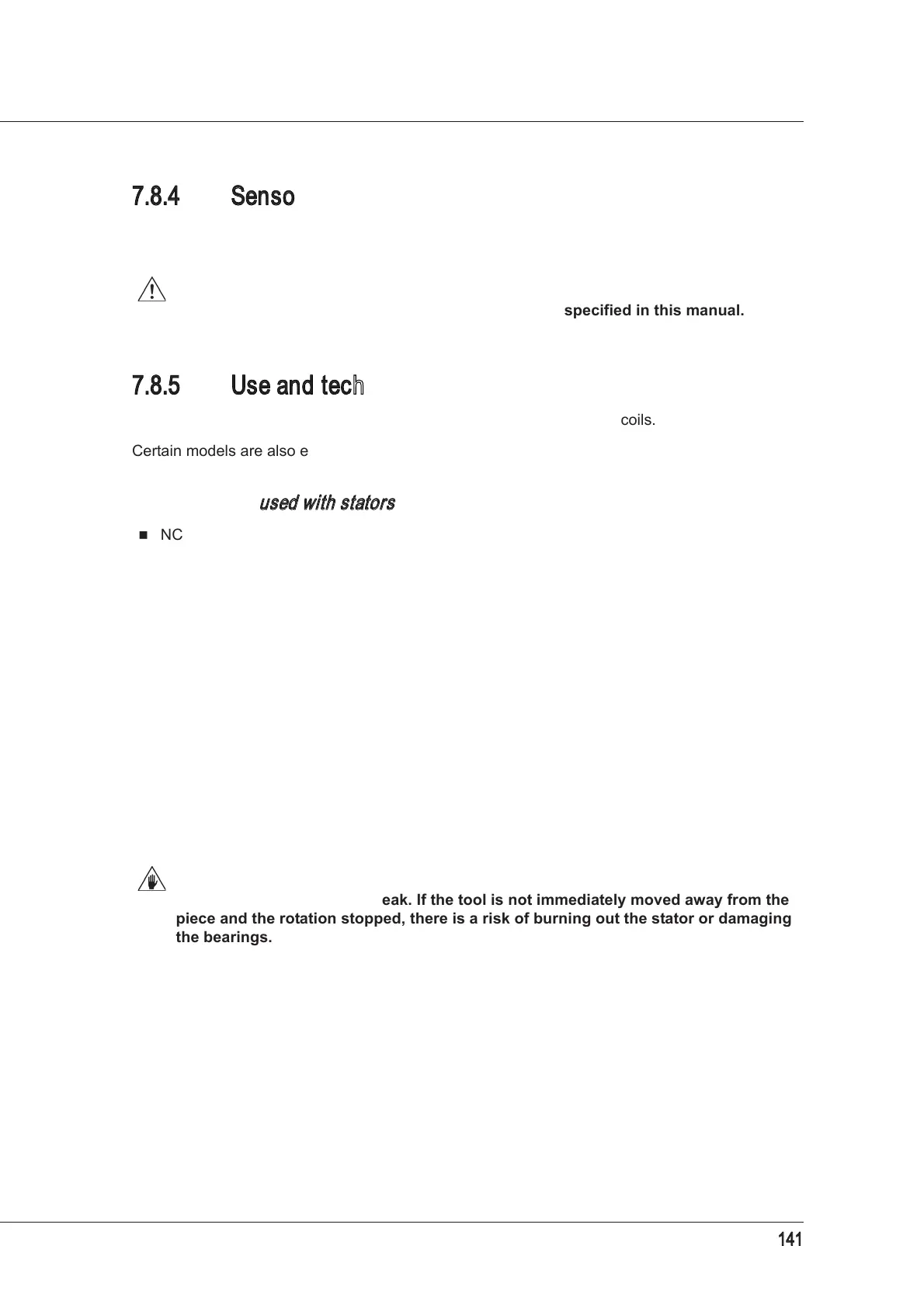 piece and the rotation stopped, there is a risk of burning out the stator or damaging