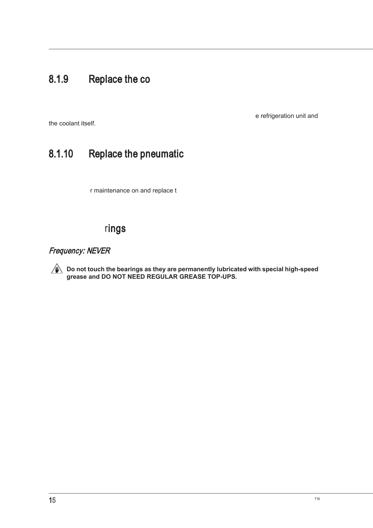Replace the coolant yearly, or as recommended by the manufacturers of the refrigeration unit and