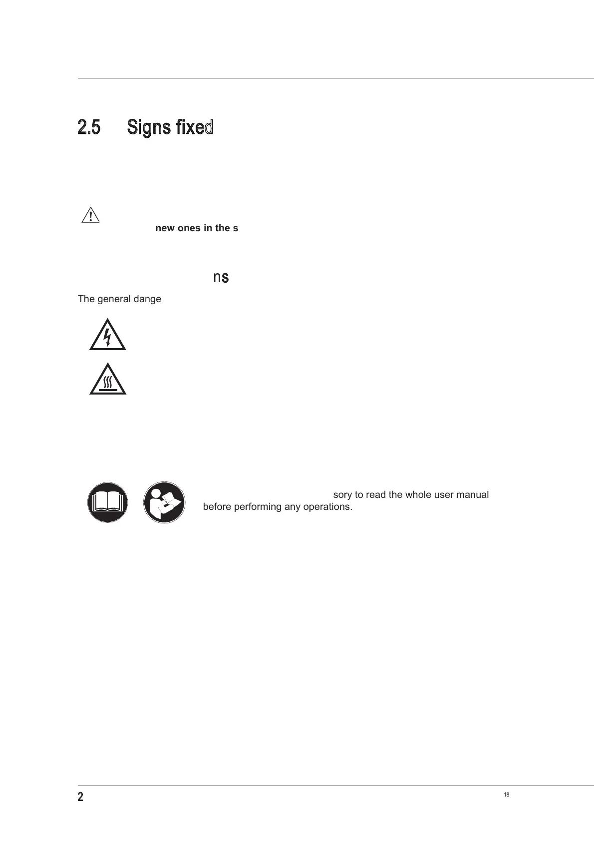 The signs fixed to the product must never be removed for any reason whatsoever.