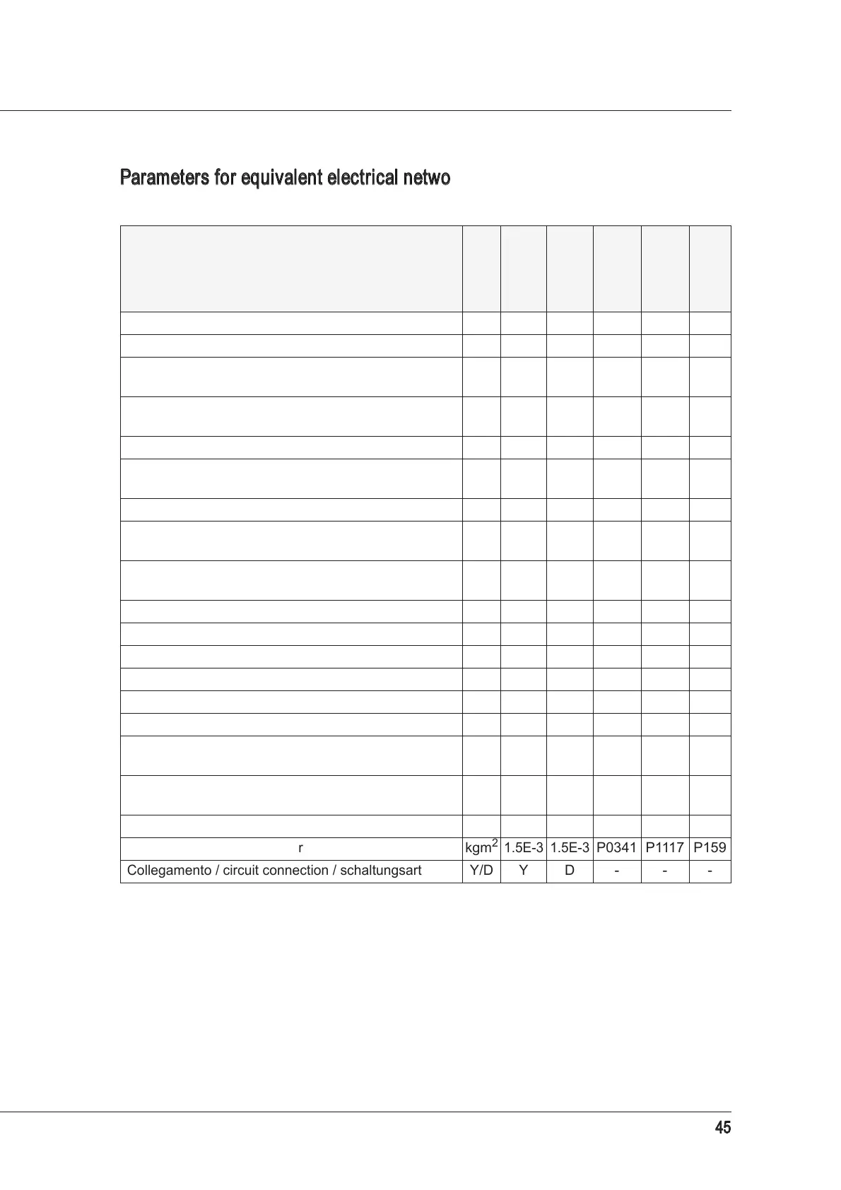 Parameters for equivalent electrical network asynchronous ES779 10/12kW