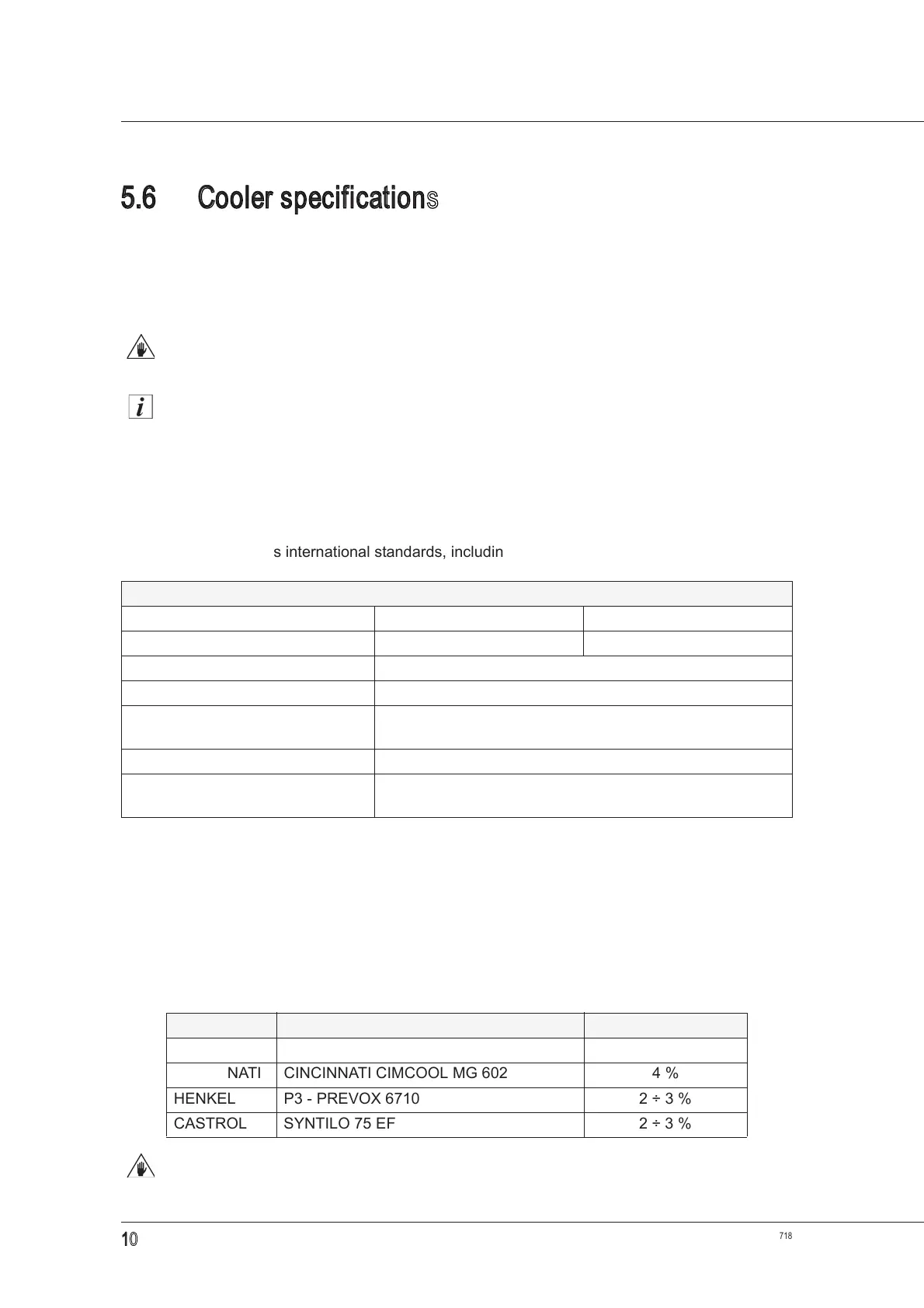 For the cooling circuit, use demineralised water (minimum 75% volume) with 10% of ethylene