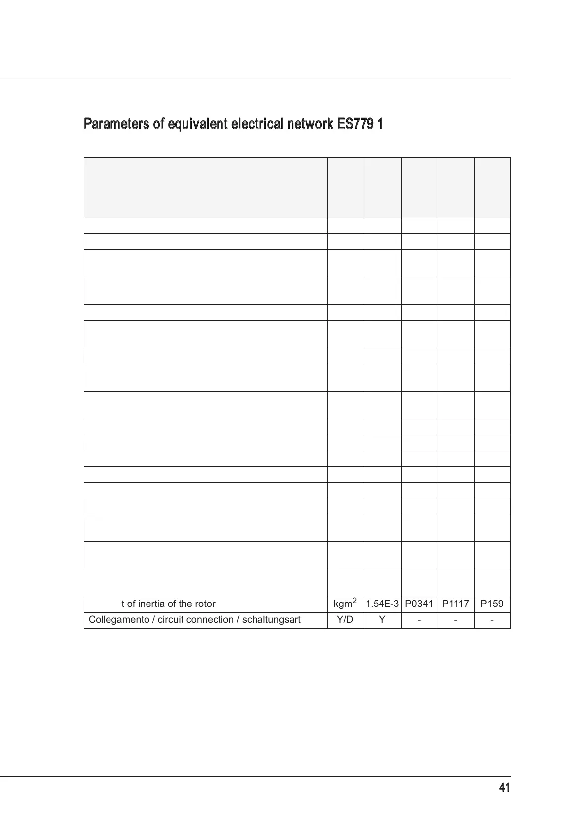 Parameters of equivalent electrical network ES779 10/12kW 380kW 250Hz