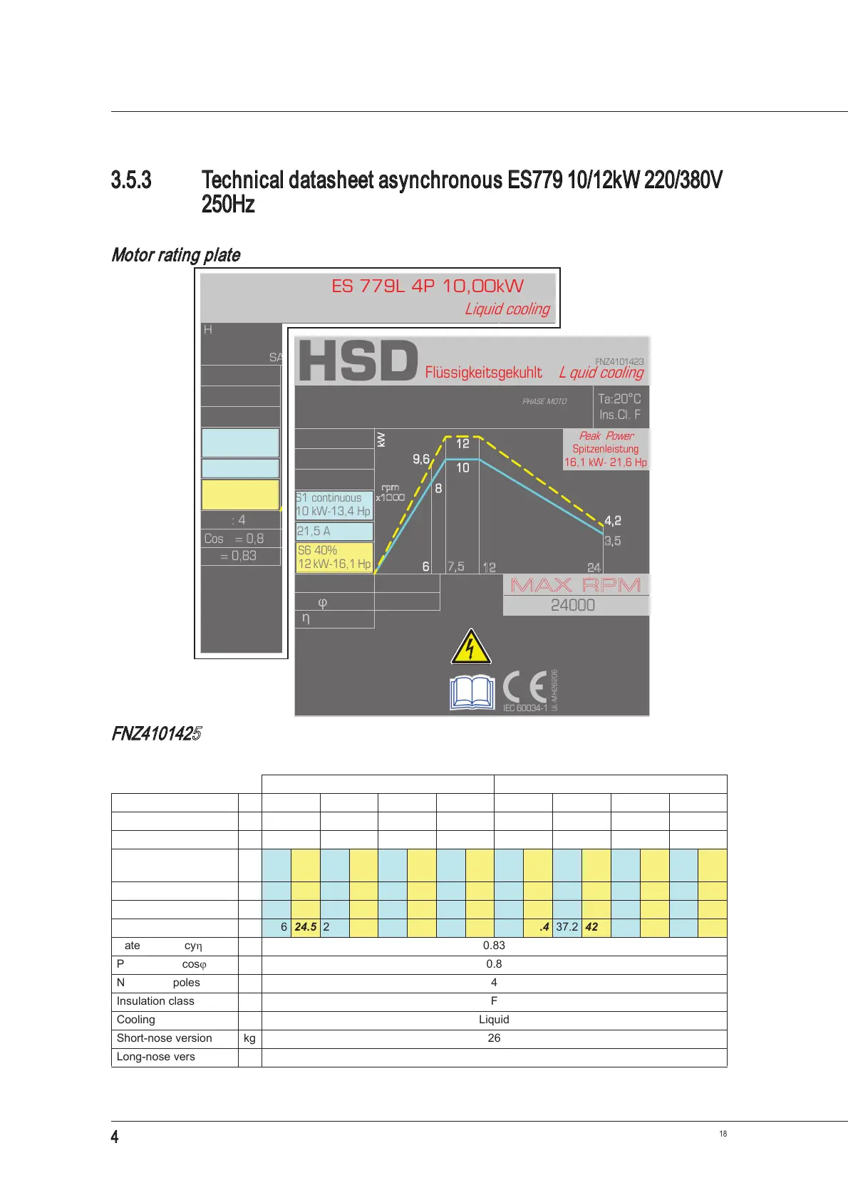 3.5.3 Technical datasheet asynchronous ES779 10/12kW 220/380V