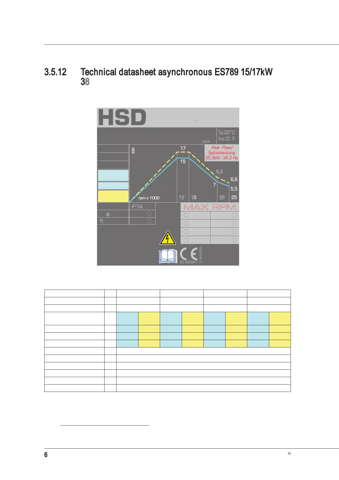 3.5.12 Technical datasheet asynchronous ES789 15/17kW