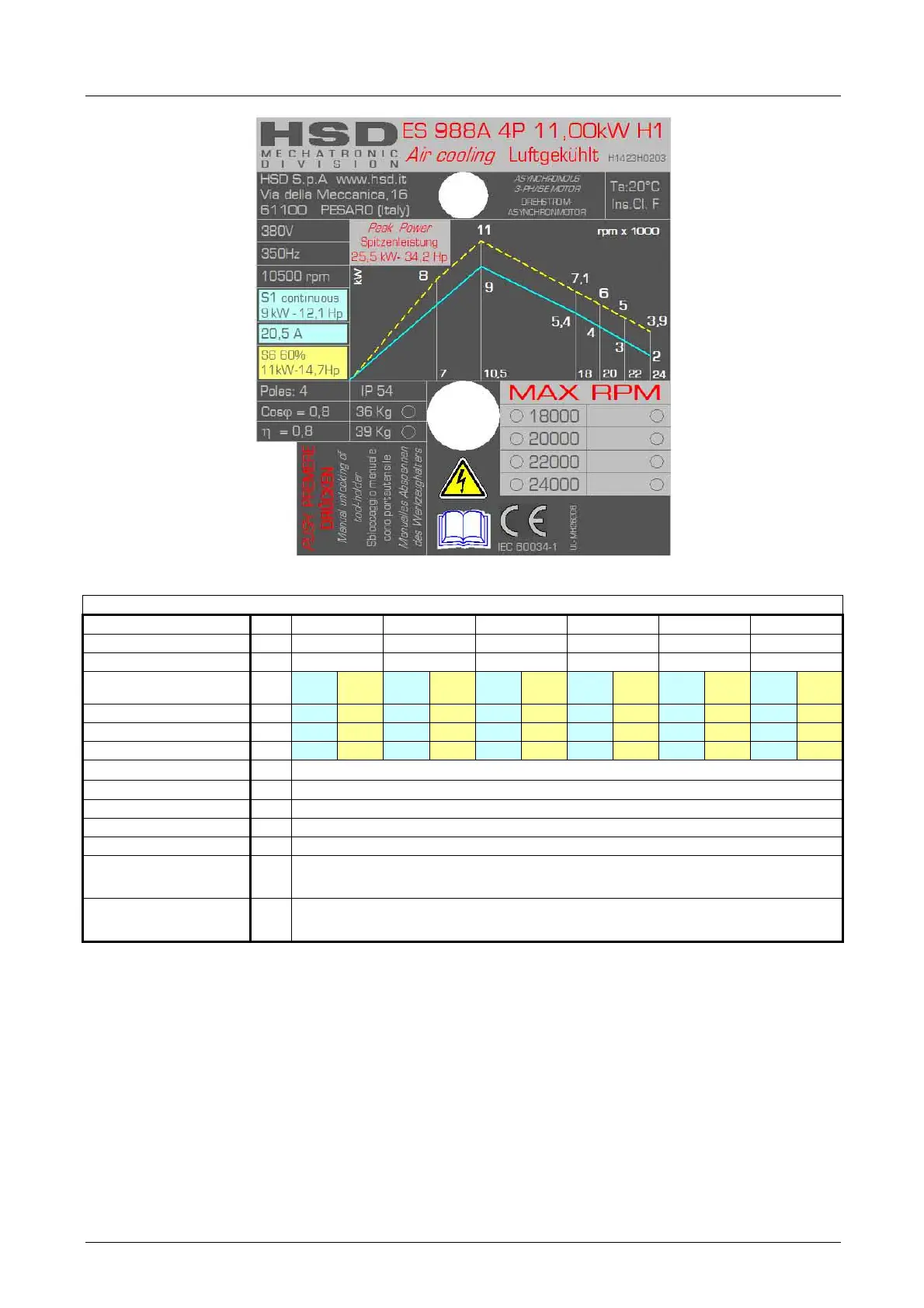Type of cooling Elettroventola / Elektrolüfter / Cooling fan