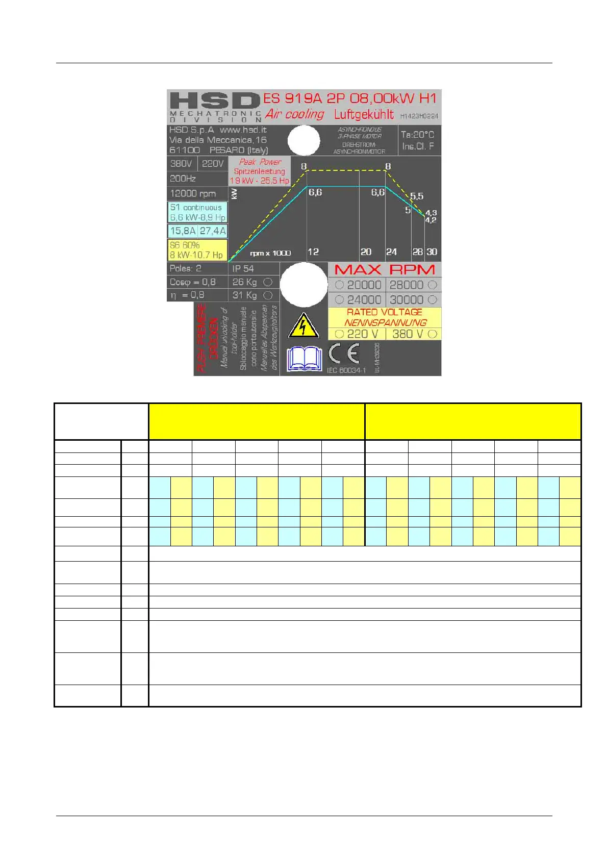 Rated power kW